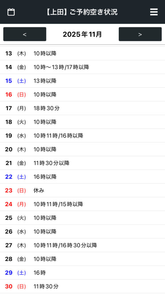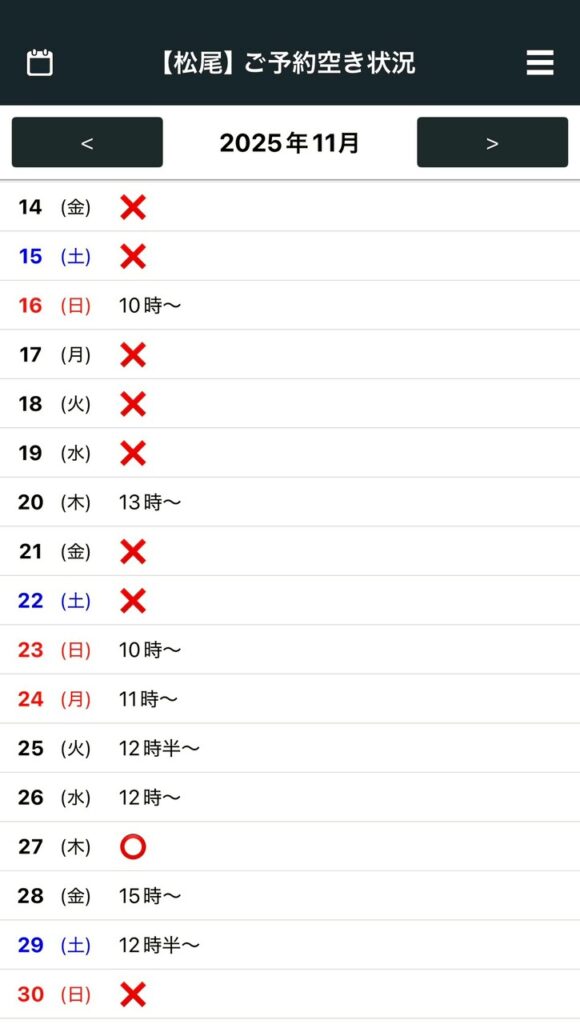 もうすぐに年末ですね。。12月のご予約も入ってきております。12月のご予定もお分かりでしたらお早めのご予約をお勧めいたします!